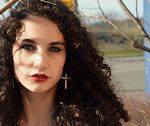Je suis une fille avec des yeux pers. J'ai les cheveux frisés-bouclés. |